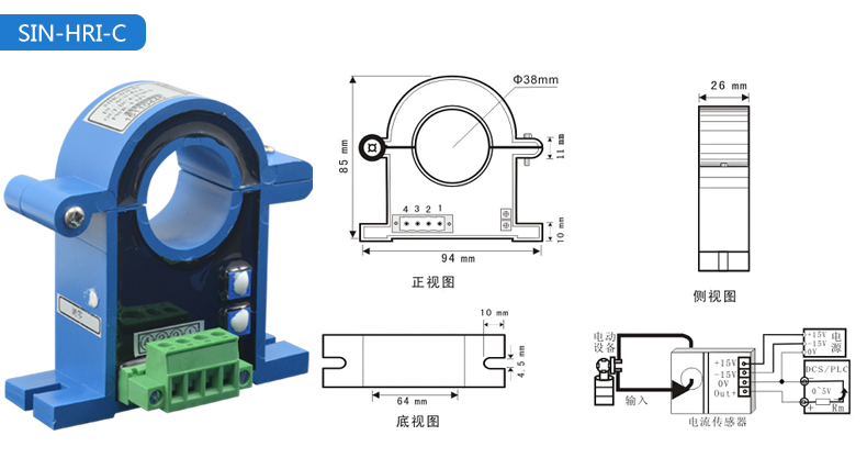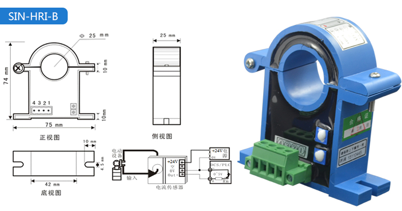 產品簡介:電流變送器可以直接將被測主回路交流電流或者直流電流轉換成按線性比例輸出DC4~20mA(通過250Ω 電阻轉換DC 1~5V或通過500Ω電阻 轉換DC2~10V)恒流環標準信號,連續輸送到接收裝置(計算機或顯示儀表)。