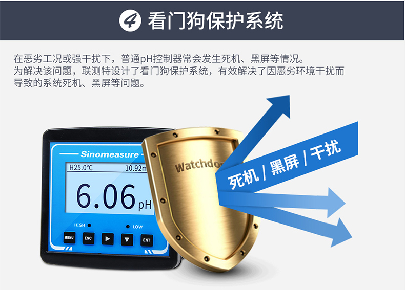 產品簡介:SIN-pH3.0儀表實現4-20mA信號輸出、繼電器報警輸出以及RS485通訊,搭配PH上位機軟件,可實現對多臺PH控制器聯機進行系統性監控的功能。