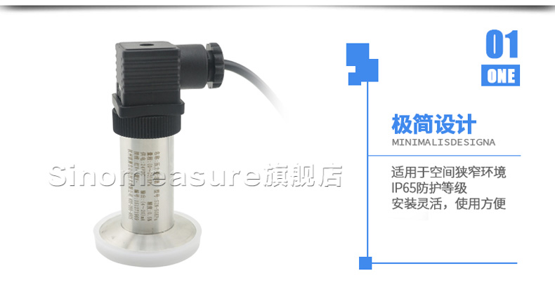 產品簡介:SIN-P350衛生平膜型壓力變送器,衛生平膜型液位變送器是測量端采用特殊堅固處理的齊平隔離膜片。結構緊湊、耐腐蝕,抗震動、抗微粒沖擊、寬范圍溫度補償。膜片采用316L不銹鋼材料,特別適用于醫療、食品行業有衛生要求的,粘稠流體壓力和液位測量,解決了結垢,堵塞,清潔衛生等問題。高精度的信號處理電路位于將傳感器輸出信號轉換為標準輸出信號,可直接與計算機、控制儀表、顯示儀表等相連。采用一體化全不銹鋼結構,經過多次不銹鋼焊接,實現了全固態設計,安裝方便。廣泛應用于食品、醫藥、衛生及釀酒工業等部門。
