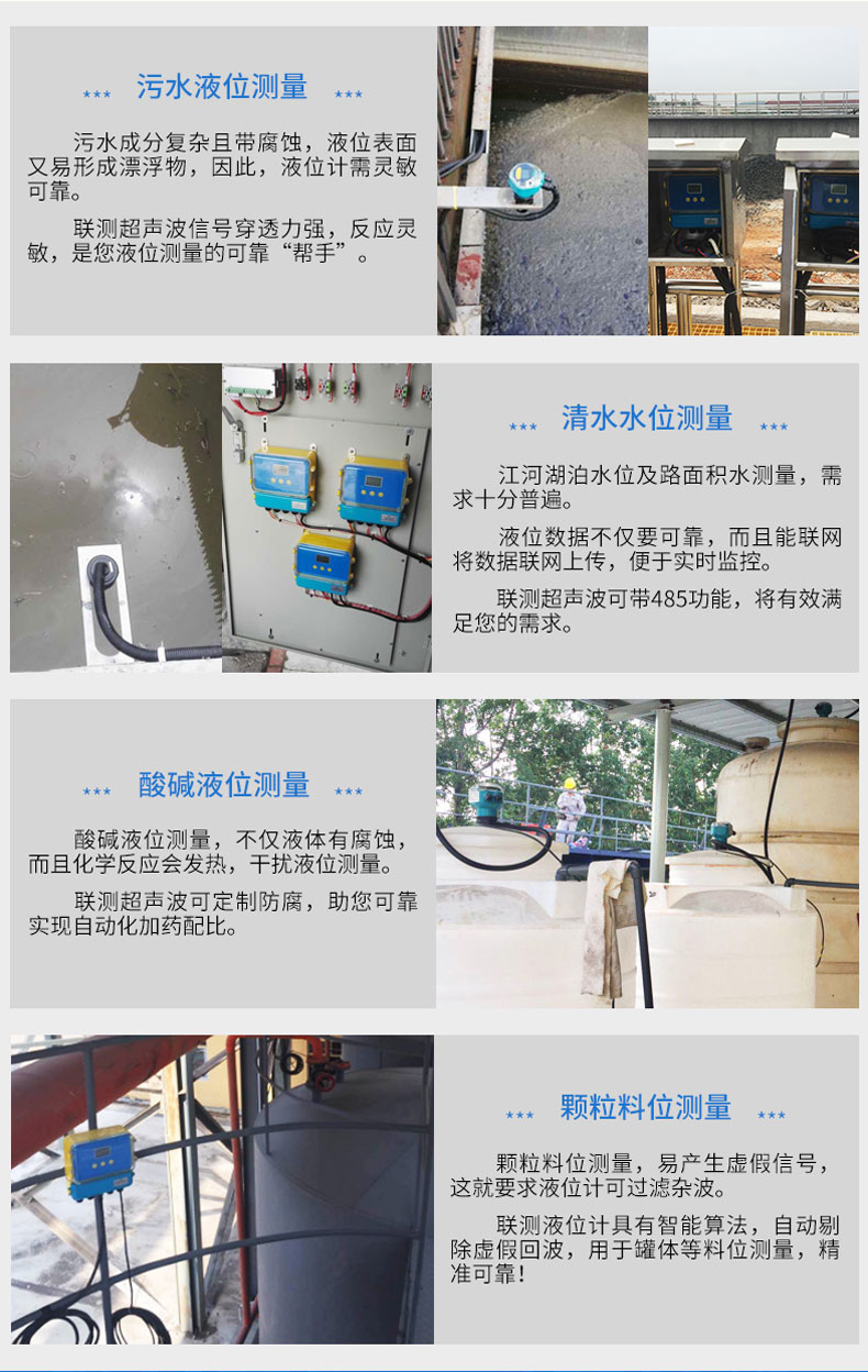 產(chǎn)品簡介:在測量中超聲波脈沖由傳感器(換能器)發(fā)出,聲波經(jīng)液體表面反射后被同一傳感器接收或超聲波接收器,通過壓電晶體或磁致伸縮器件轉(zhuǎn)換成電信號(hào),并由聲波的發(fā)射和接收之間的時(shí)間來計(jì)算傳感器到被測液體表面的距離。 由于采用非接觸的測量,被測介質(zhì)幾乎不受限制,可廣泛用于各種液體和固體物料高度的測量。